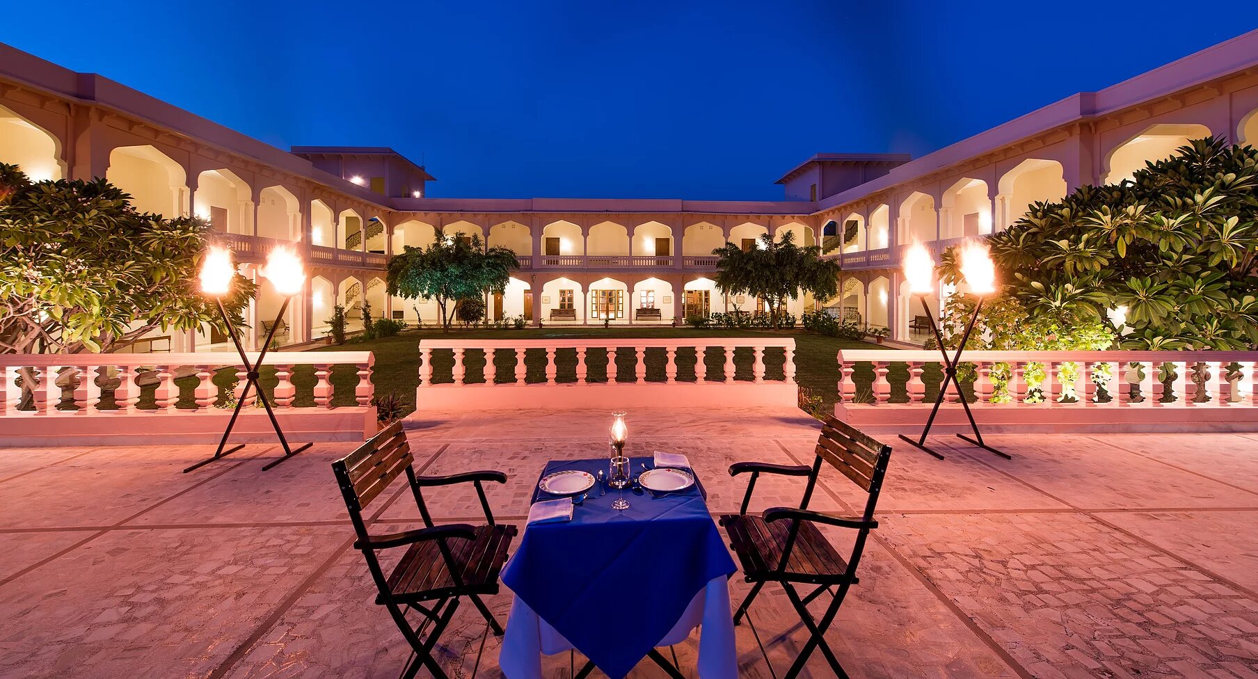 As one of the best hotels in Ranthambore, Hotel Dev Vilas promises two luxe categories of rooms - Standard Suites and Pool Side Suites. The rooms are phenomenally designed with contemporary amenities so that you are treated to nothing but the best. All materials and craftspeople have been sourced locally, thus ensuring the participation and benefit of the local talent.