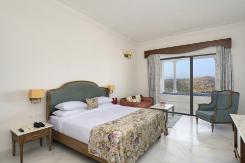 Nestled by the side of Fatehgarh Resort, Fateh Vilas is surrounded by a jungle with breath-taking views of Lake Pichola. Fateh Vilas is the latest addition to the Fateh Collection. The property utilizes space excellently and features a total of 75 rooms and suites. The rooms are spacious with sit-outs and some of them have private plunge pools with amazing views of the Aravalli hills.