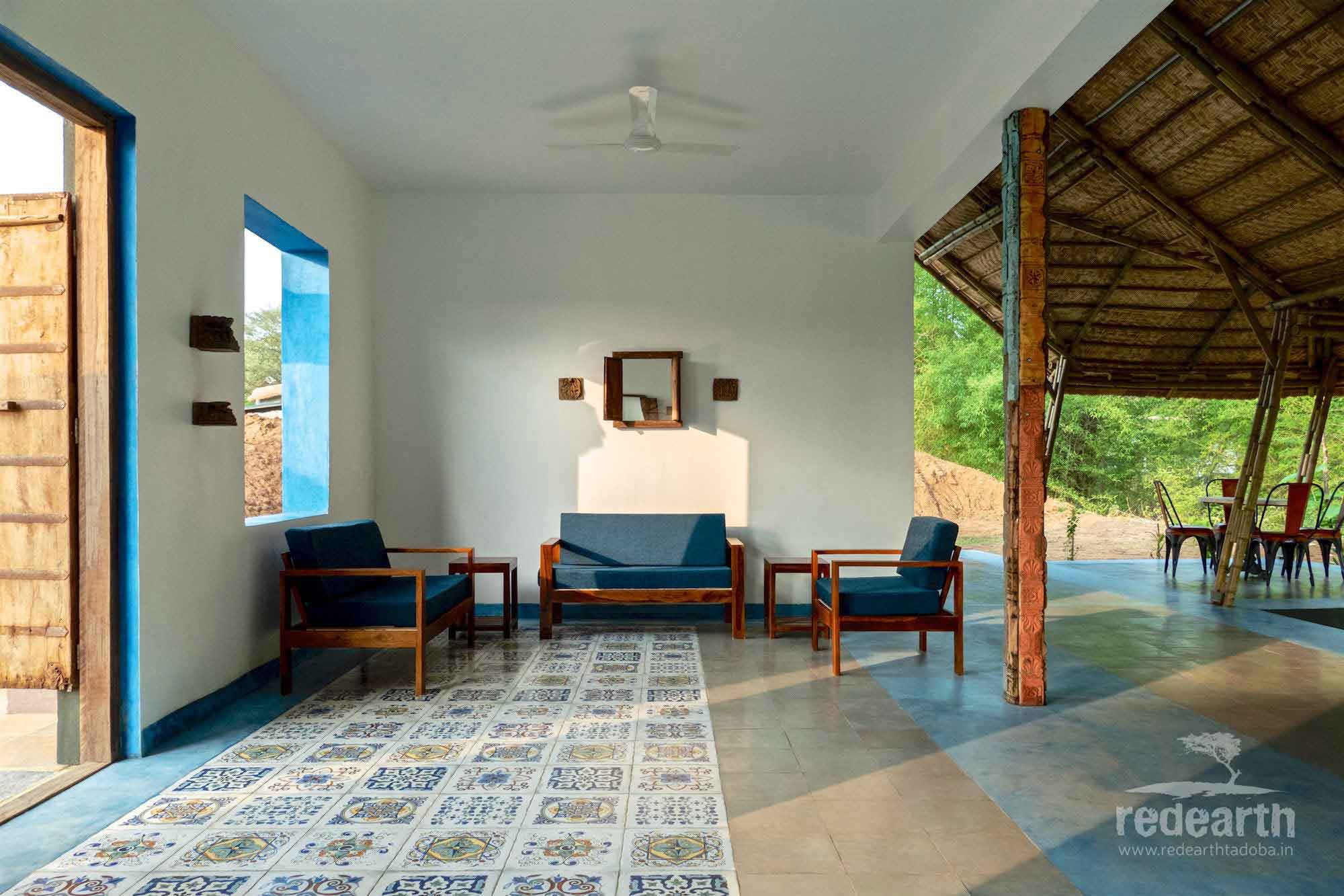 Red Earth Tadoba is located in the pristine Zarri/Kholsa zone, with lush green forests on three sides. The only sound you’ll hear is of the gurgling rivulet of the River which passes through the property. Red Earth Todoba is being constructed with minimum interference with its surrounding environment. It is designed around the existing plant life. None of the trees in the property cut to create the resort,to the contrary building are positioned to accommodate every tree or shrub. In fact, we are adding more trees to encourage bird nesting. An eco-sensitive resort, Red Earth’s commitment to socio-sustainability also extends to Tadoba. Local villagers(mostly Gonds) are being trained and employed, especially working hard to empower local women.