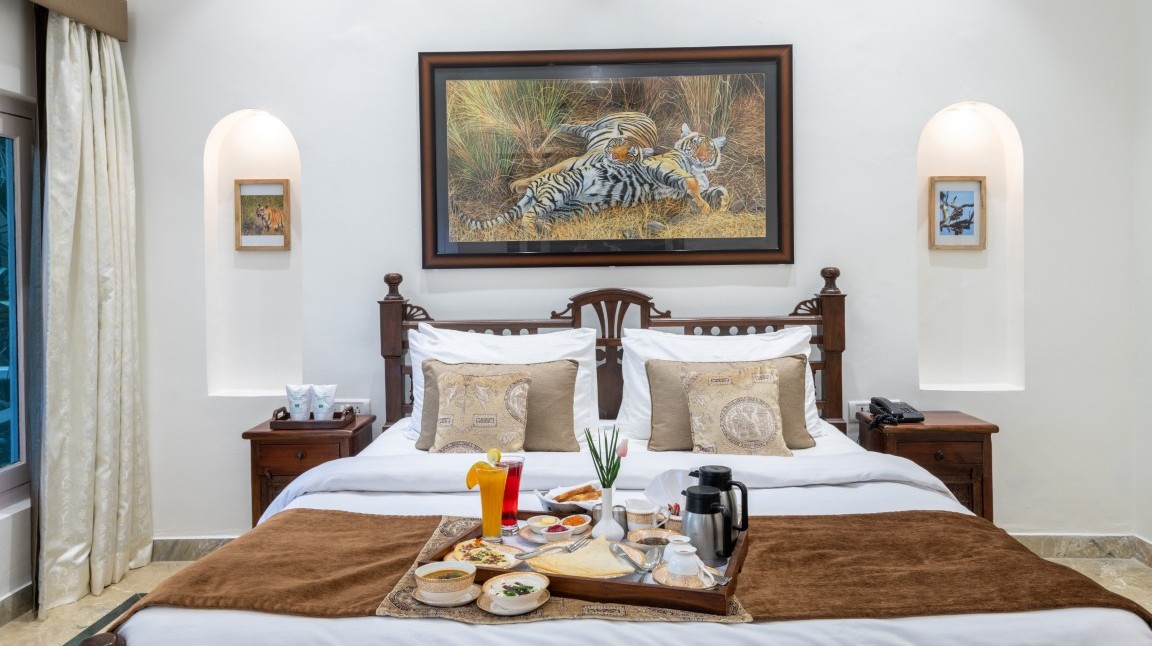 We are enchanted to introduce Tiger's Den Resort in the beautiful lush green and tranquil surroundings of the Land of the White Tiger - Bandhavgarh National Park. This resort was conceptualized, designed, and now managed by professionals from the service industry. The resort has 34 elegantly appointed Deluxe and luxury cottages rooms. The balcony of the cottages overlooks the marvelous and gigantic hills of the Vindhyanchal range. Situated on the fringes of a local village “Tala” the Tiger's Den Resort offers you a location advantage, which no other resort does - You can walk some distance to view a day in the life of an Indian village, where the pace of life is still measured by the rhythm of the seasons.